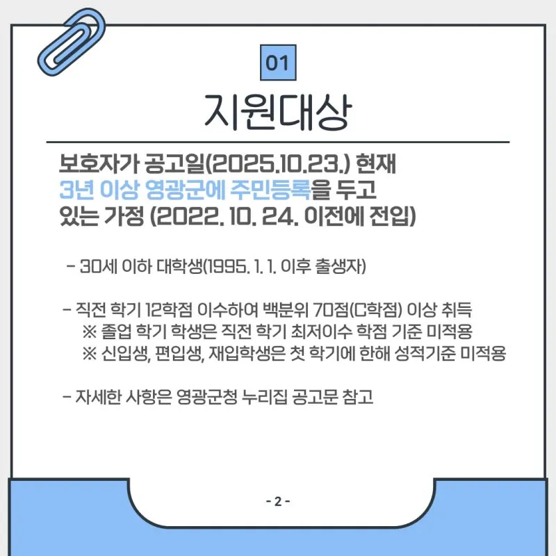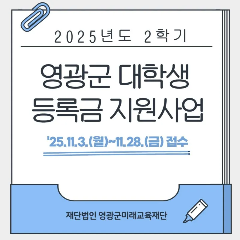 2025년도 2학기 영광군 대학생 등록금 지원사업 안내