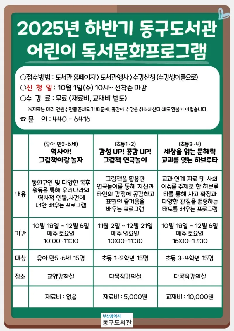 📞 문의 : 동구도서관 어린이실 ☎051-440-6416