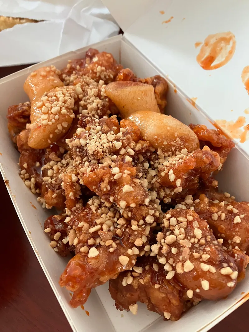 저는 맛있어 보이는 닭강정을 포장해왔어요.