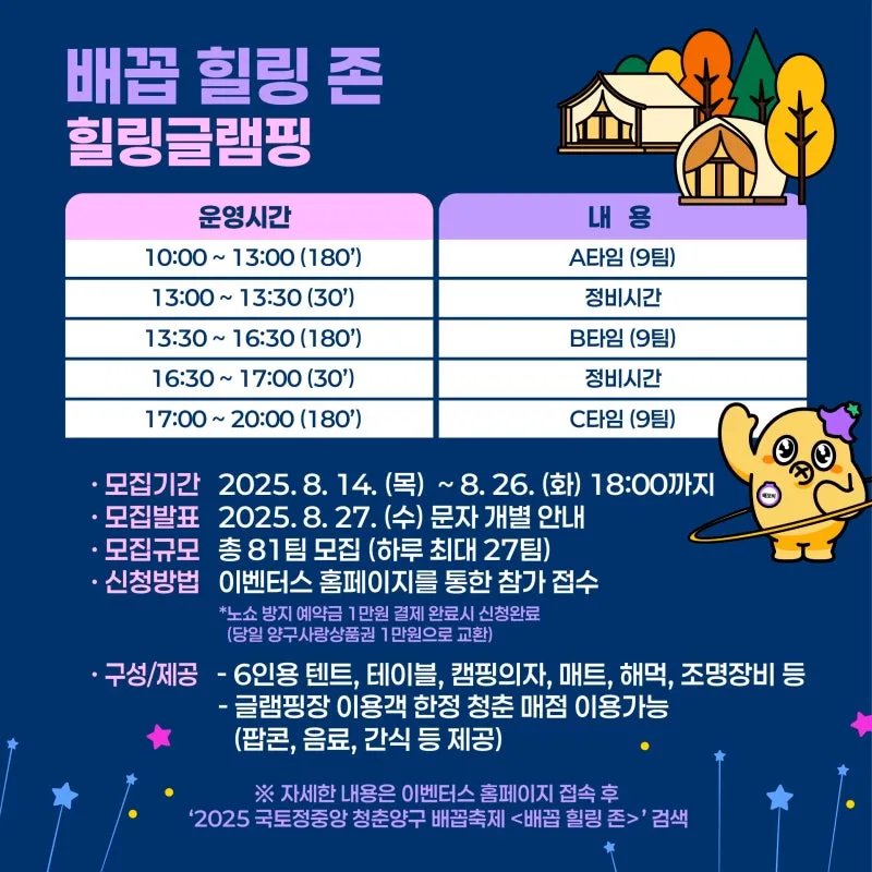 [배꼽힐링존 힐링글램핑💖] 모집중이니, 관심 있으신 분들은 신청 부탁드릴게요!