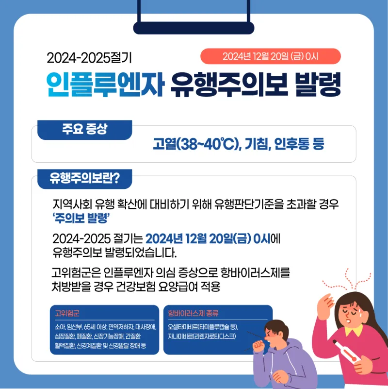 인플루엔자 유행주의보가 발령되었습니다.