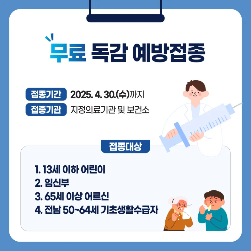 무료로 예방접종하실 수 있습니다.
