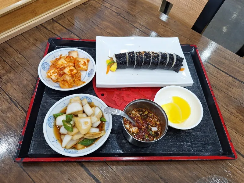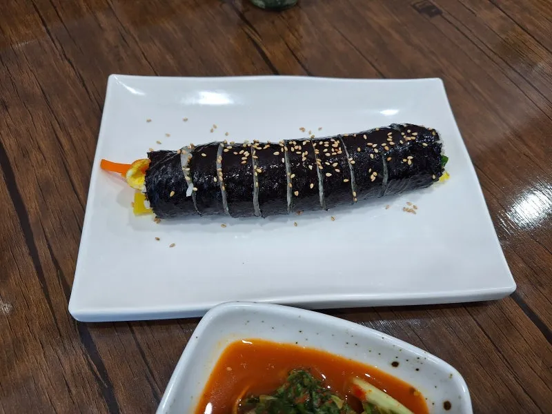 우엉, 당근이 많이 들어가 아삭하면서 달콤한 맛으로 손이 계속 가는 김밥이었어요.
