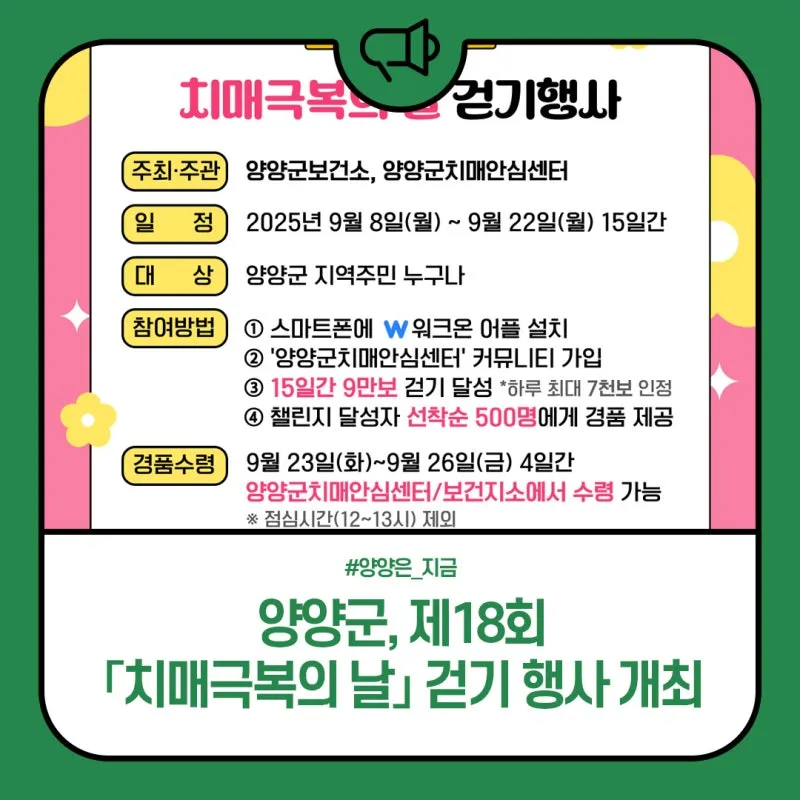 #치매극복의날 #걷기챌린지 #워크온 #건강생활 #치매예방 #함께걷기 #지역사회 #건강습관