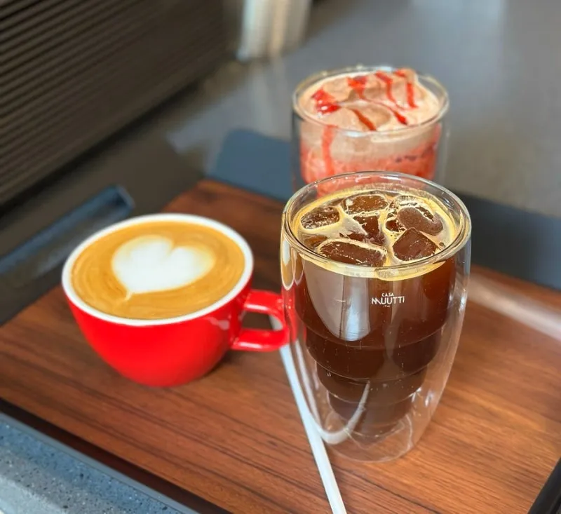 빵을 고르다가 다른 사람이 주문한 커피를 보게 되었어요. 드립 커피뿐만 아니라 라떼나 음료도 맛있어 보이네요.