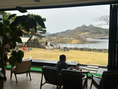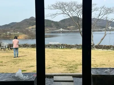 폴딩도어 덕분에 매장 안에서도 선명하게 임실 옥정호가 보이거든요.
