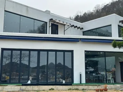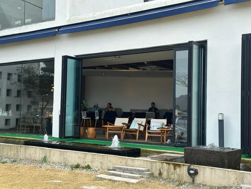 심지어 폴딩도어로 되어 있어 문을 모두 열면 개방감이 장난 아니더라고요. 야외인 듯 야외 아닌 야외 같은 카페였어요.