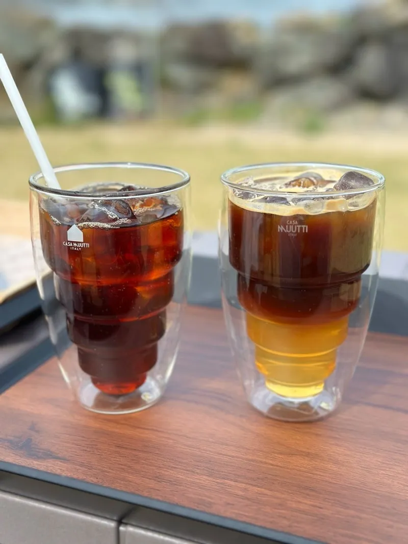 보통 아이스커피를 주문하면 잔에 물방울이 맺히곤 하는데 특수 제작한 컵이라서 그런지 물기가 전혀 없고 차가움이 온전히 보존되었어요.