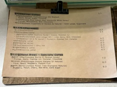 커피 로스터리답게 대체적으로 핸드드립 커피와 필터 커피 가격이 착하네요. 커피 원두의 원산지로 세계지도를 그려도 될 만큼 다양한 원두를 구비해 놓아 선택할 때 행복한 고민에 빠지게 돼요.