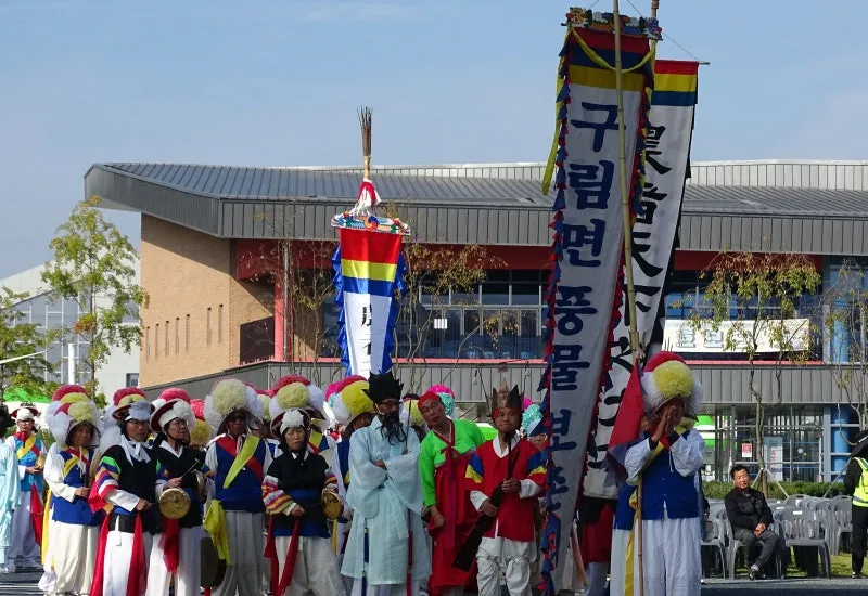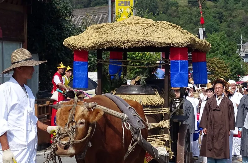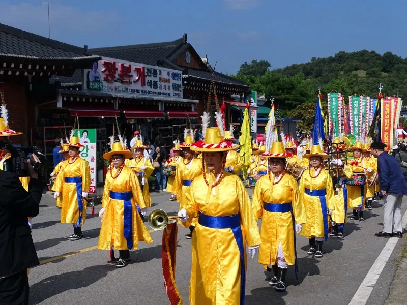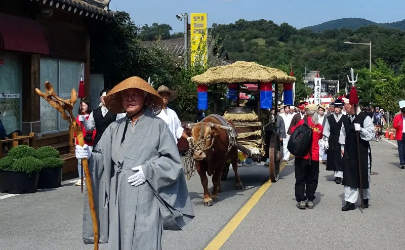 진상품 순창 고추장을 호위하는 호위 장군, 무학대사, 고추장 마차, 보부상, 농악단이 진상 행렬을 따릅니다. 경쾌하고 신나는 농악 장단이 관람객의 흥을 돋우네요.