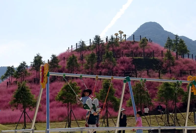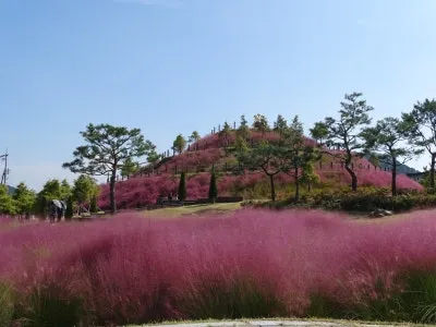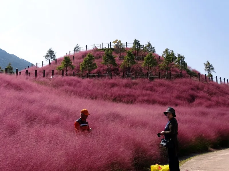 핑크빛이 가득한 팡이 공원의 핑크뮬리는 순창장류축제에 오신 관광객들을 반갑게 맞이해주고 있네요. 팡이 공원 꼭대기로 올라가면 주변의 핑크뮬리를 전부 볼 수 있어 환상적인 풍광을 자랑합니다. 비록 장류 축제는 끝이 났지만 핑크뮬리는 당분간 계속 피어있을 것이니 환상적인 풍경을 즐기실 수 있습니다.