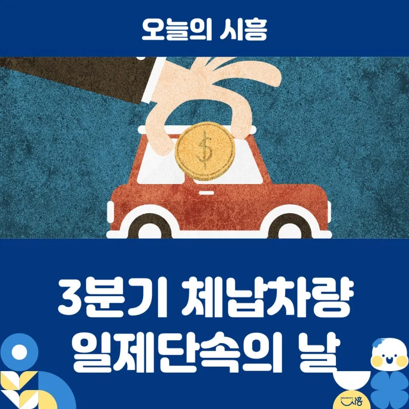 시흥시는 지방세 및 과태료 체납에 대한 적극적인 징수와 조세 정의 실현을 위해 분기별 ‘체납차량 번호판 영치 일제단속의 날’을 운영합니다. 3분기 단속은 오는 8월 26일에 실시합니다.