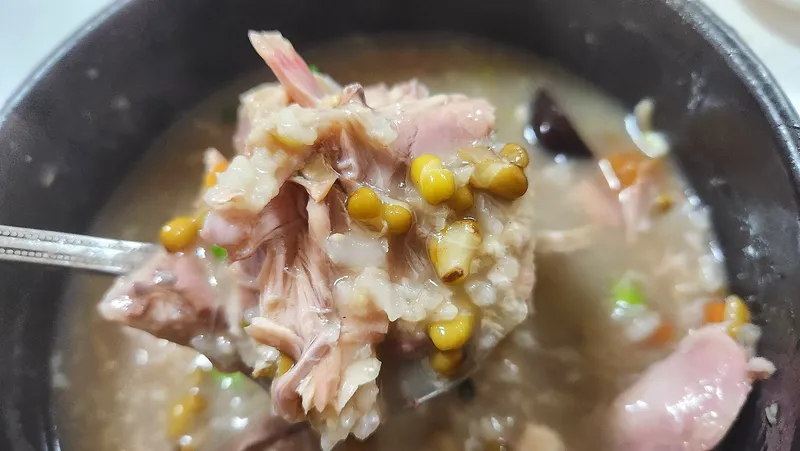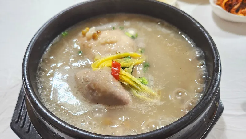 삼계탕 한 큰 술 하면 몸보신이 되는 것 같습니다. 삼계탕 국물이 고소하고 진하네요. 녹두삼계탕을 먹고 나면, 몸이 건강해지는 느낌을 받을 수 있을 거예요. 또 지친 일상에서 잠시 여유와 평화를 느낄 수 있습니다.