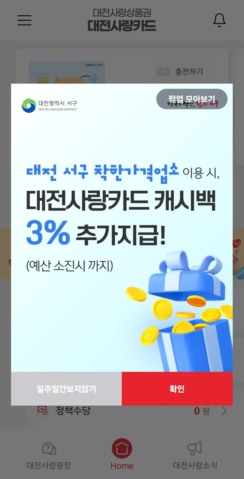 대전 서구 착한가격업소 이용 시, 대전사랑카드 캐시백 3% 추가 지급하는데요. 대전사랑카드로 결제하면 경제적인 소비를 할 수 있답니다.