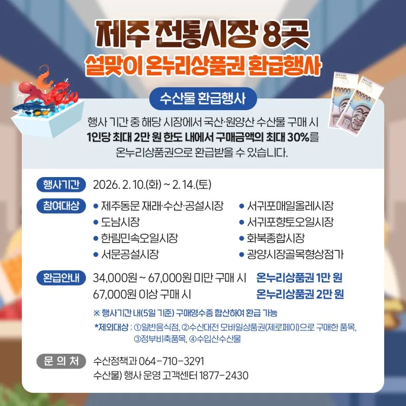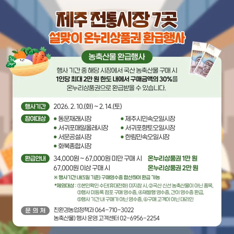 🛍️ 2월 명절 준비 걱정 끝! 제주 시장, 온누리상품권 환급행사!