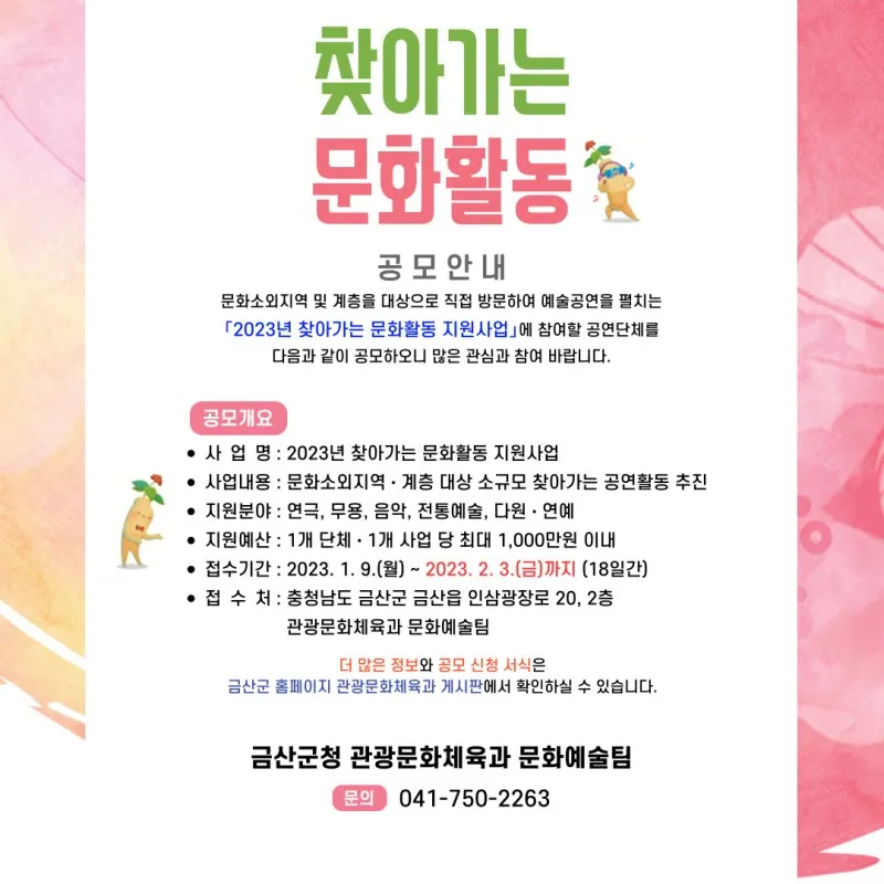 문의 : 금산군청 관광문화체육과 문화예술팀 ☎041-750-2263