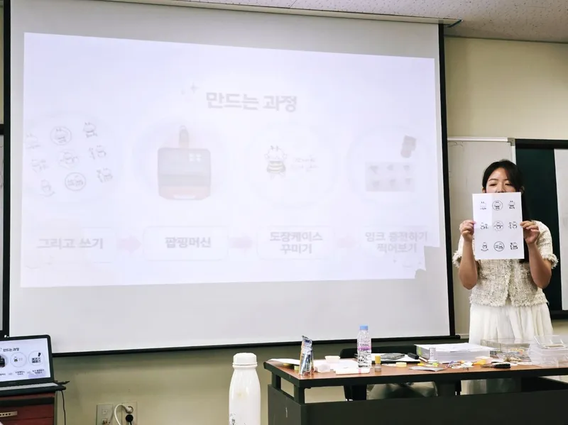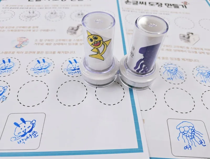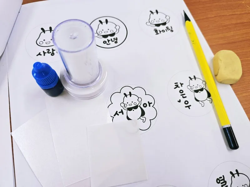 준비된 종이 도장칸에 원하는 그림을 그려 준비!