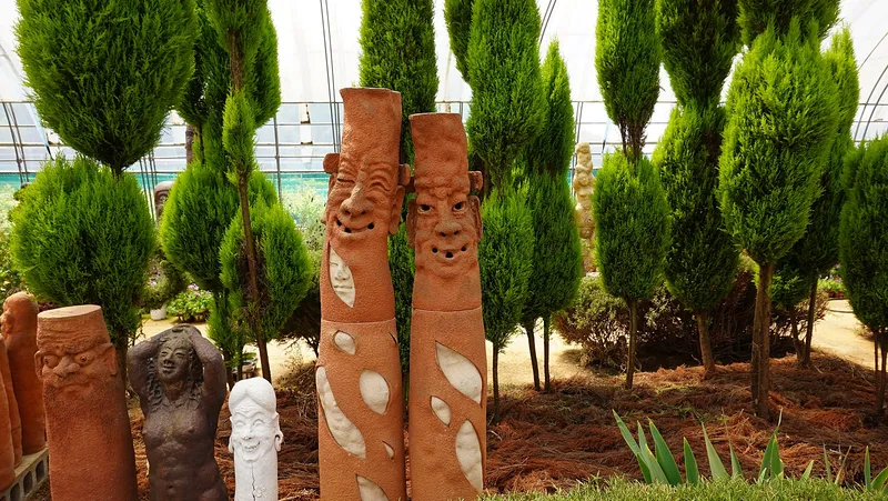 아름다운 허브 식물과 도자기 작품이 어우러져