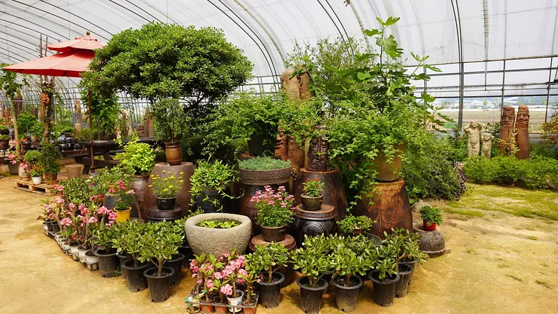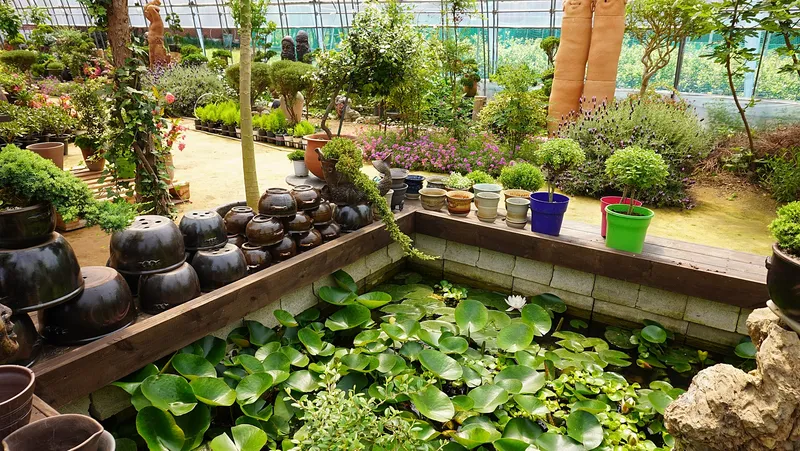 도자기와 식물과 꽃들이 어우러져