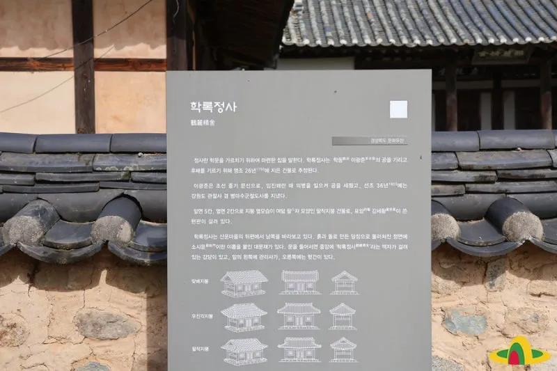 학록정사는 영천 이씨 입향조인 학동 이광준을 추모하고 후학을 양성하기 위해 건립한 정사에요.