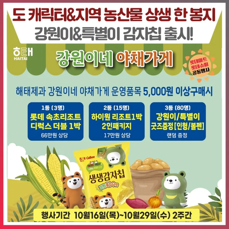 #강원감자칩 #강원이특별이 #강원이네야채가게 #해태제과 #롯데마트 #강원농산물 #지역상생 #춘천애니토이페스티벌 #감자칩 #옥수수맛 #강원도