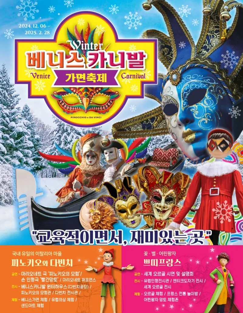 한국 안에 작은 유럽마을 쁘띠프랑스& 이탈리아마을 피노키오와 다빈치에서 겨울기간 동안 <가면축제 Winter 베니스 카니발>을 개최하오니 여러분들의 많은 관심 바랍니다.
