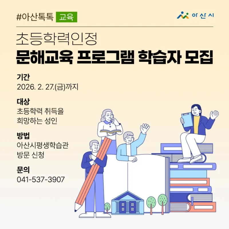 초등학력 취득을 목표로, 문해교육 프로그램에 참여해보세요 ✏️📘