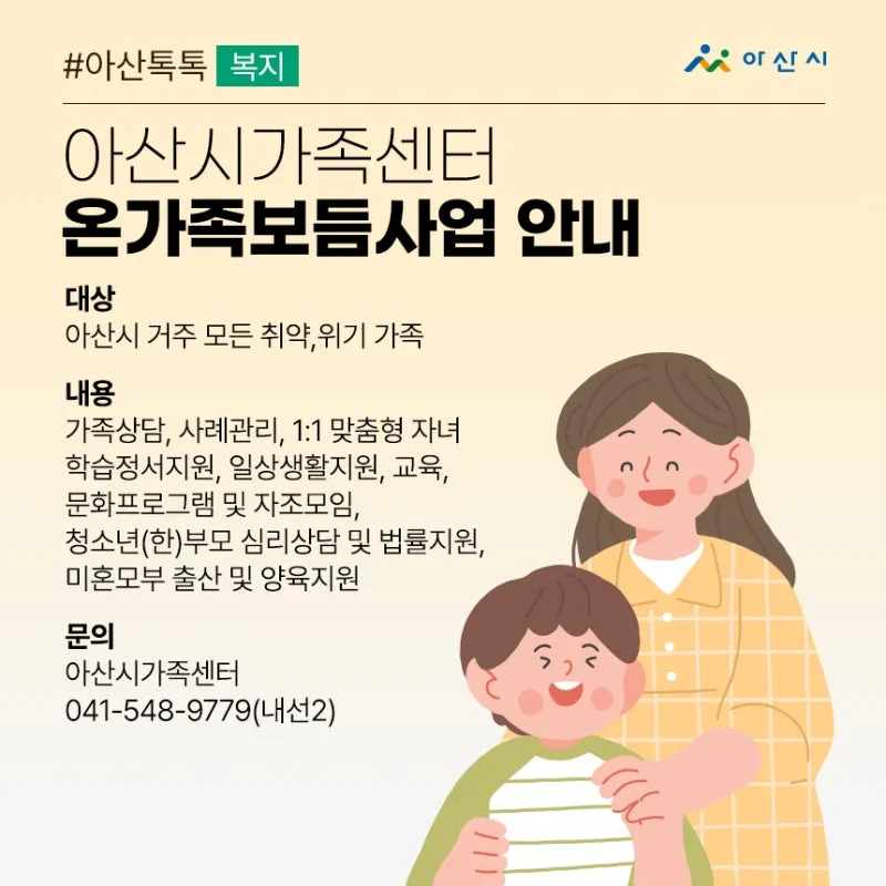 [복지] 아산시가족센터 온가족보듬사업 안내
