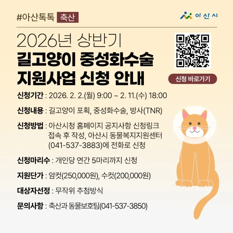[축산] 2026년 상반기 길고양이 중성화수술 지원사업 신청 안내