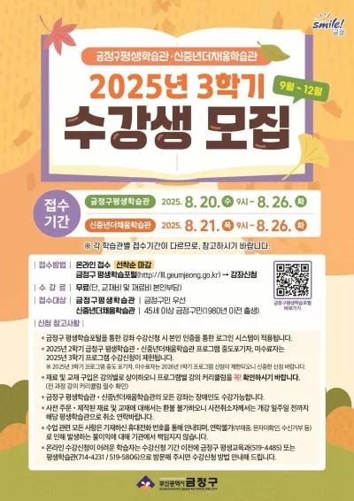 ■ 2025년 3학기 금정구평생학습관·신중년더채움학습관 수강생 모집