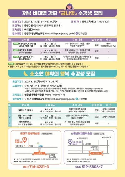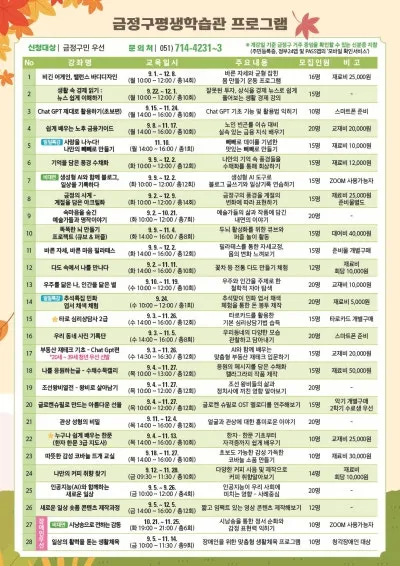 • 접수방법: 금정구 평생학습포털(홈페이지) 온라인 접수