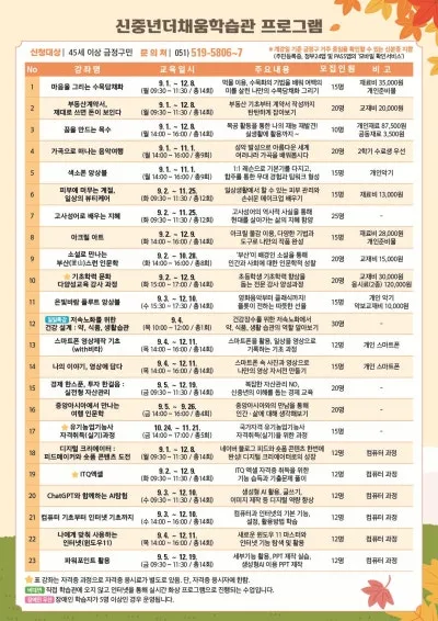 - 신중년더채움학습관: 45세 이상 금정구민