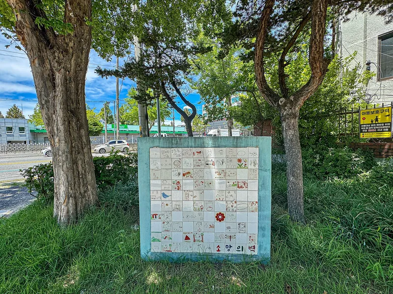 입구 쪽 한편에는 따뜻한 감성이 묻어나는 타일 벽화 작품도 만날 수 있습니다. 누군가의 손길로 만들어진 작은 예술은 마을의 기억이 담긴 공간 같아 보였습니다. 아이들이 남긴 듯한 그림과 글귀를 보며 괜히 마음 한편이 따뜻해지는 느낌이 들었습니다.