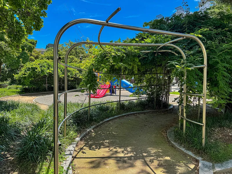 공원 끝자락에는 나무로 뒤덮인 초록 터널이 있는데 햇볕을 피할 수 있는 그늘 공간이자 아이와 함께 산책하며 이야기를 나누기 좋은 조용한 통로랍니다.
