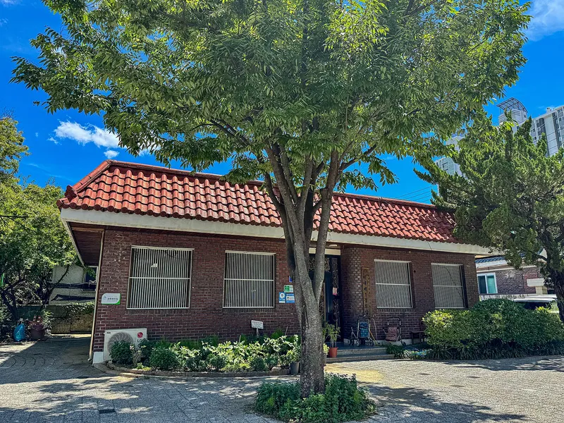 공원 한편에 있는 붉은 기와지붕의 벽돌집이 눈에 들어왔습니다. 마치 오랜 시간 이 동네를 지켜온 이웃 같은 느낌이 들었습니다. 문 앞에 놓인 화분들과 그늘진 평상, 그리고 느긋하게 놓인 의자 하나까지 누군가 이곳을 다정하게 돌보고 있다는 게 고스란히 느껴지는 풍경이었습니다.