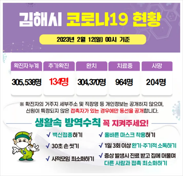 김해시 코로나19 상황 알림(2023. 2. 12. 00:00 기준)