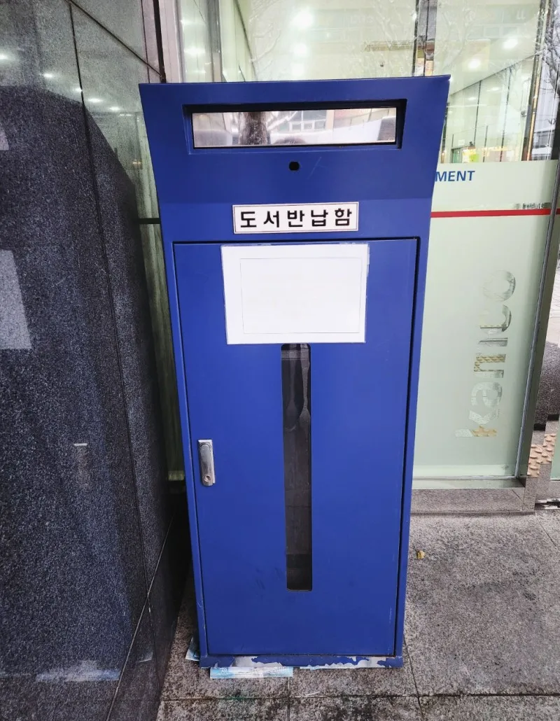 건물 앞에 있는 도서반납함을