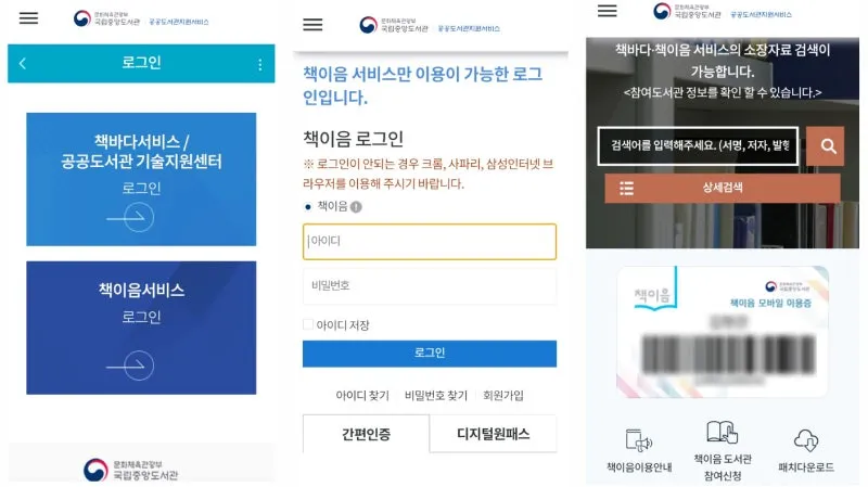 로그인하면 책이음 모바일 이용증을
