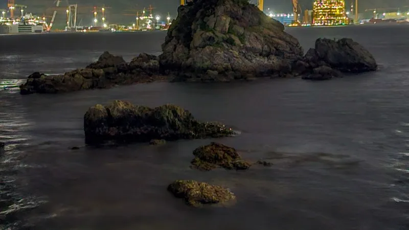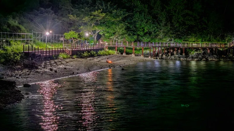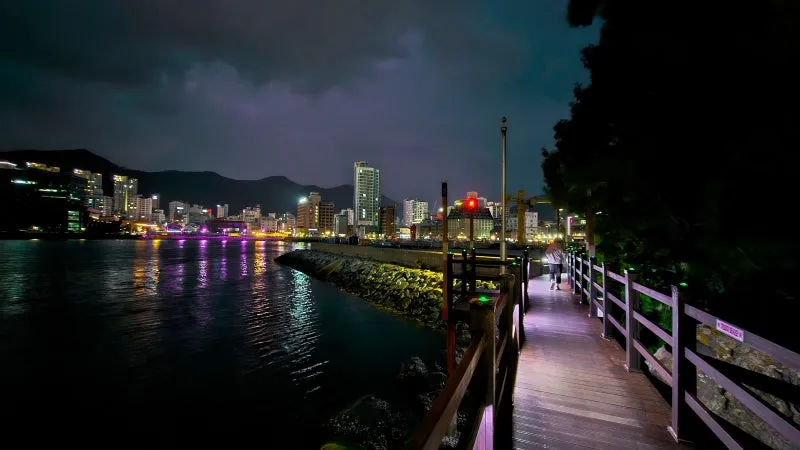 조명불빛에 의해 바다색도 파랑,초록으로 물들어 있는 모습이 황홀할 정도로 운치가 있고 아름답습니다.