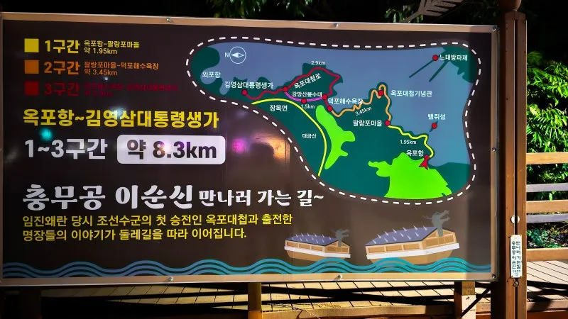거제도 밤에 걷기좋은 길, 거제 옥포에 있는 충무공 이순신 만나러 가는 길 제1구간을 함께 걸어보아요.