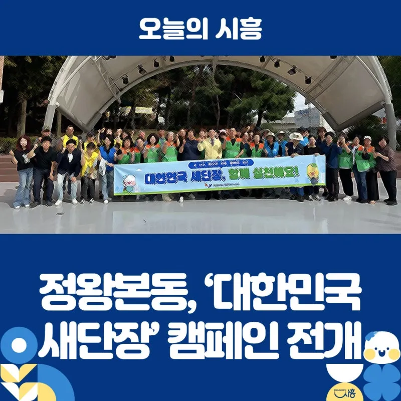 시흥시 정왕본동 행정복지센터는 지난 10월 2일 정왕본동 일대에서 공무원과 주민 등 80여 명이 참여한 가운데 ‘대한민국 새단장’ 캠페인을 진행했습니다.