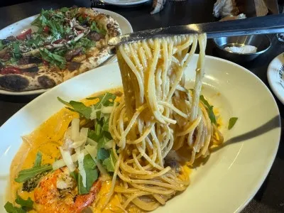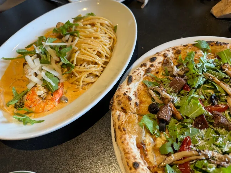 메인 메뉴인 파스타와 화덕 피자가 나왔습니다.🍕