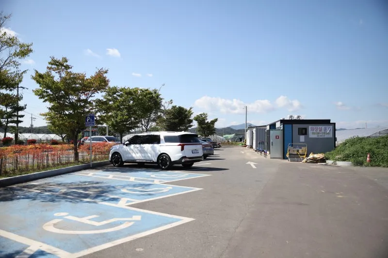 악양둑방 입구에 주차장과 화장실이 마련되어 있어요.