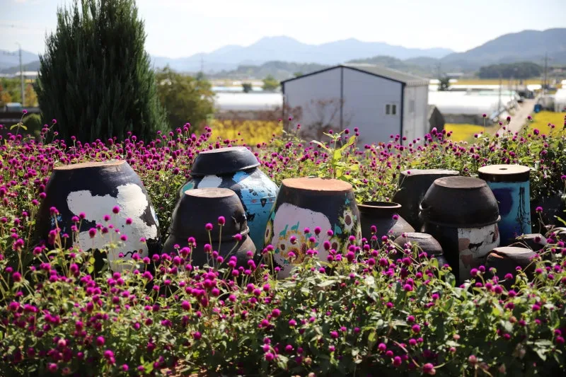 천일홍 사이에 있는 장독대는 그림이 그려져 있어서 예쁜 포토존이 된답니다.