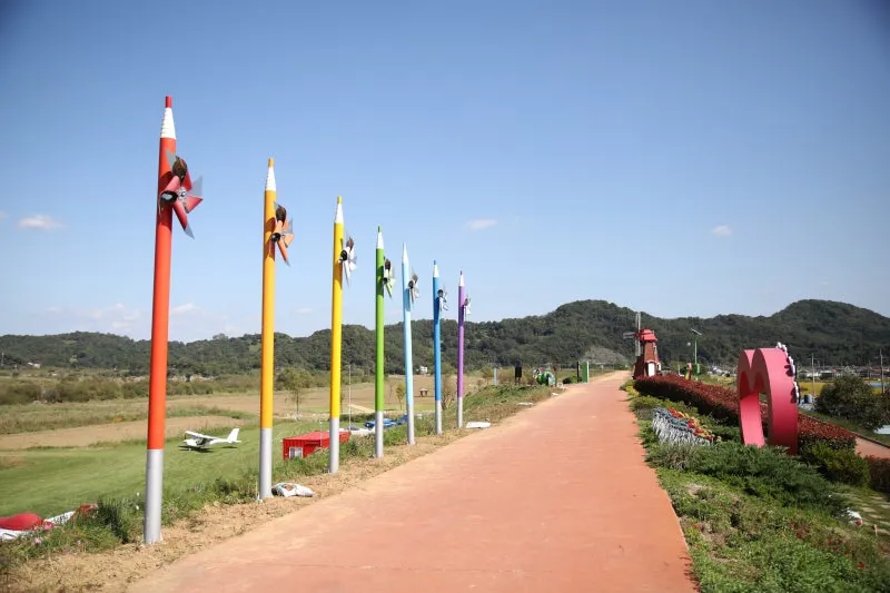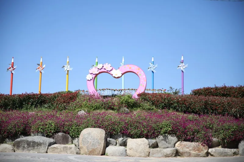 악양둑방에 도착하면 제일 먼저 대형 하트 포토존과 연필 바람개비 조형물을 볼 수 있어요.