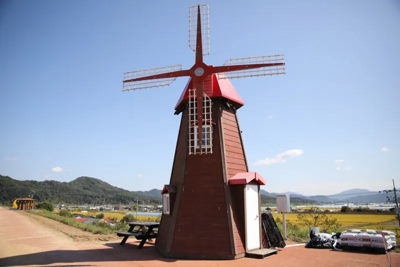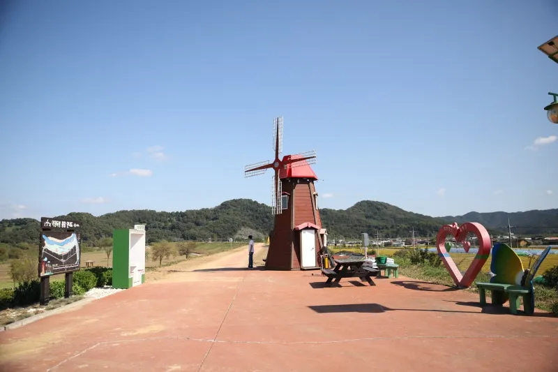 함안 산책하기 좋은 악약둑방에는 풍차도 있고 나비 모양 의자랑 하트존도 마련되어 있어요.