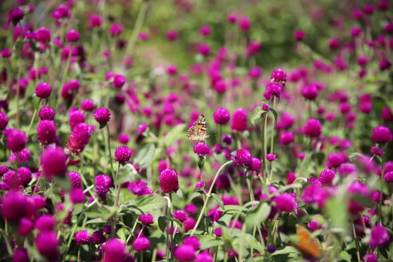 천일홍 주변으로는 나비들이 끊임없이 날갯짓하면서 날아다니고 있었어요.