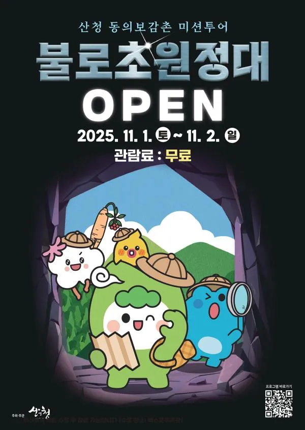 공지사항 현재 위치: 홈 > 커뮤니티 > 공지사항 제목 불로초 원정대, 불로초를 찾아라! 이름 관리 작성일 2025-06-05 13:55:18 조회 1590 첨부파일 불로초 원정대, 불로초를 찾아라!.jpg ❍ 행 사 명:‘불로초 원정대, 불로초를 찾아라!’ ❍ 행사기간: 2025. 6. 14.(토) ~ 6. 15.(일) <2일 간> ❍ 장 소: 동의보감촌 내 ❍ 주요내용 -‘불로초 원정대, 불로초를 찾아라!’키트 배부 - 미션 완료 후 리워드 지급(산 너머 친구들 키링 및 홀로그램 카드) - 찾아가는 관광 팝업부스 운영(관광객 대...