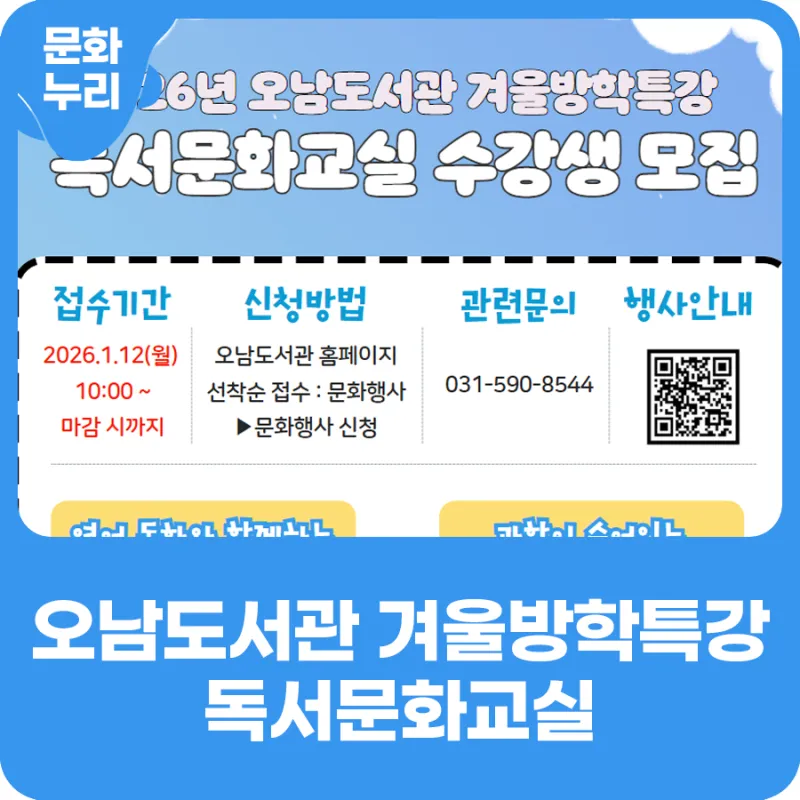 2026년 오남도서관 겨울방학특강 독서문화교실 수강생 모집
