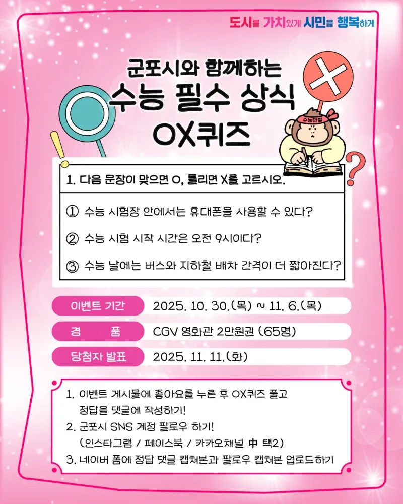 군포시와 함께하는 수능 필수 상식 OX 퀴즈 이벤트🎓